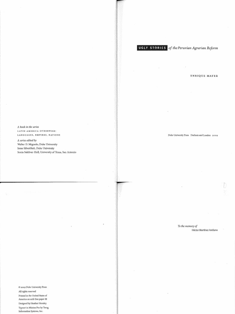Mayer Enrique Ugly Stories Of The Peruvian Agrarian Reform Pdf Narrative Peru