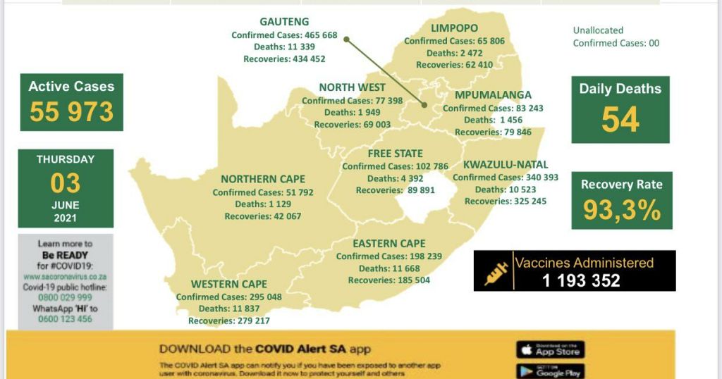 Latest Confirmed Cases Of Covid 19 In South Africa 17 June 2021 Sa Corona Virus Online Portal